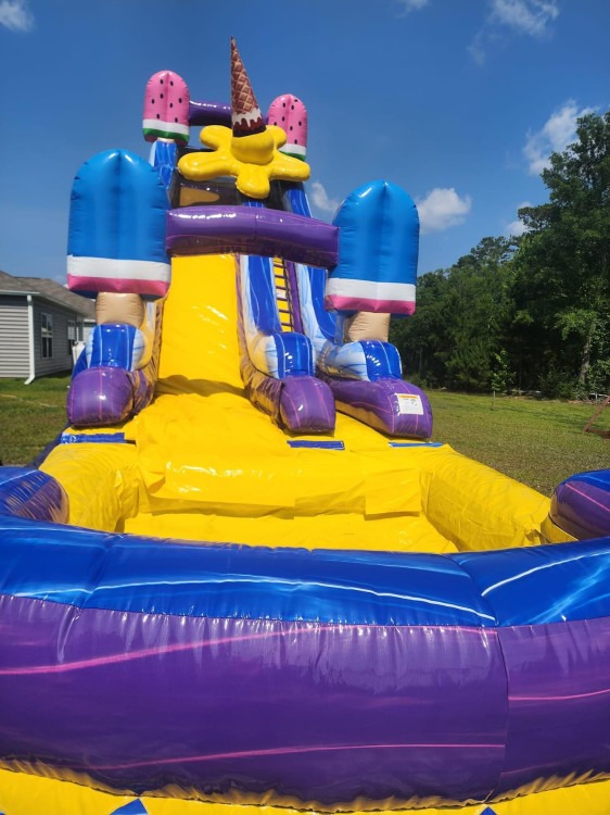 Rent the 24ft Ice Cream Waterslide for the sweetest summer fun! 🍦💦 Perfect for birthdays, schools, churches, and events in New Bern, Havelock, Jacksonville, Greenville & all Eastern NC. Massive 24ft drop, fast slide, big splash pool, clean, insured & delivered on time. Book today!